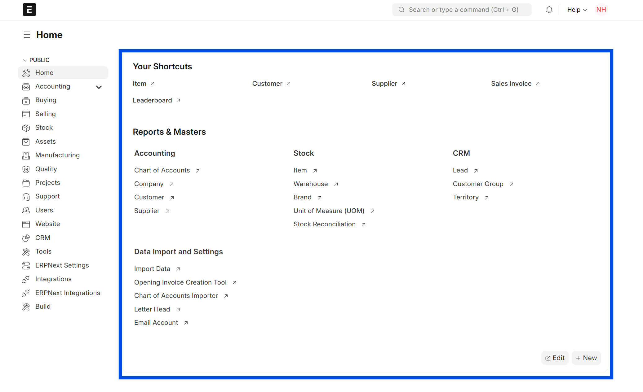 - Quick Links → pintasan ke dokumen penting (misalnya di Selling ada “Quotation”, “Sales Order”).